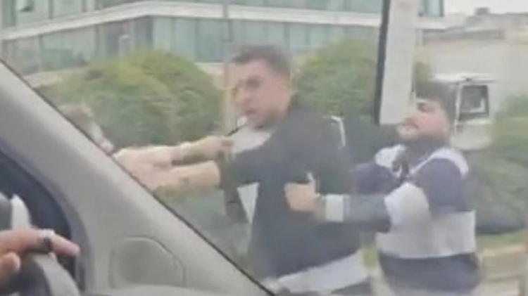 Yaşanan kavga, çevredeki başka bir sürücü tarafından cep telefonu kamerasıyla kaydedildi.