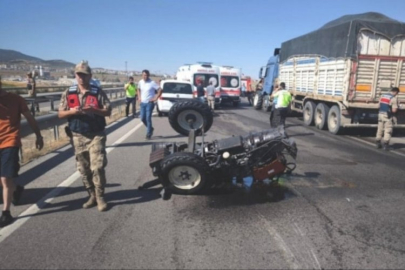 Gaziantep'te TIR ile çarpışan traktör ikiye bölündüğü kazada 1'i ağır 2 kişi yaralandı.