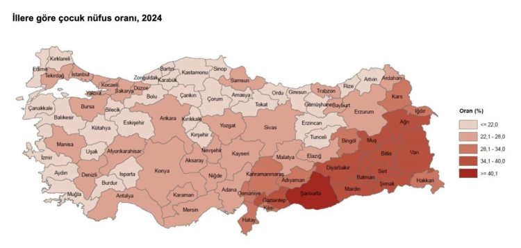 Birleşmiş Milletlerin (BM) tanımına göre 0-17 yaş grubunu içeren çocuk nüfus, 1970'te toplam nüfusun yüzde 48,5'ini oluştururken bu oran 1990'da yüzde 41,8 ve 2024'te yüzde 25,5 oldu.