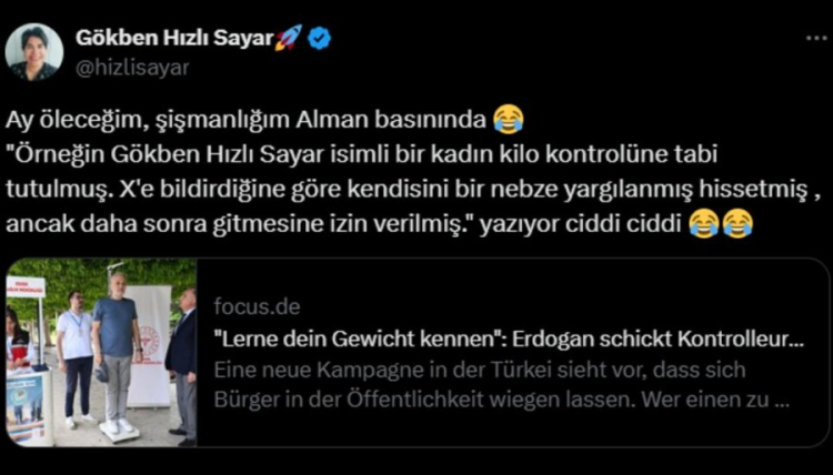 Yaptığı paylaşımın ardından Alman haber sitesinde Sayar'ın paylaşımı haber konusu oldu. "Ay öleceğim, şişmanlığım Alman basınında. 'Örneğin Gökben Hızlı Sayar isimli bir kadın kilo kontrolüne tabi tutulmuş. X'e bildirdiğine göre kendisini bir nebze yargılanmış hissetmiş , ancak daha sonra gitmesine izin verilmiş.' yazıyor ciddi" dedi.