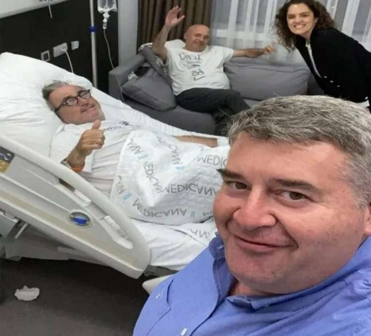 Çeşme Belediye Başkanı Ekrem Oran (önde) ve eşi, ameliyat sonrası Korcan Karar'a geçmiş olsun ziyaretinde.