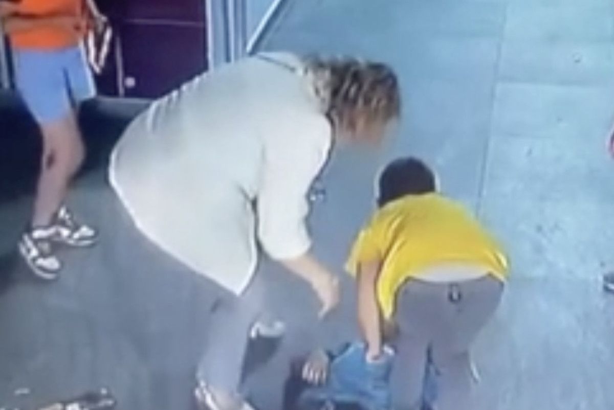 Çocuk, soluk borusuna kaçan krakerin çıkmasının ardından rahat nefes almaya başladı.Yaşananlar, okulun güvenlik kamerasınca kaydedildi.