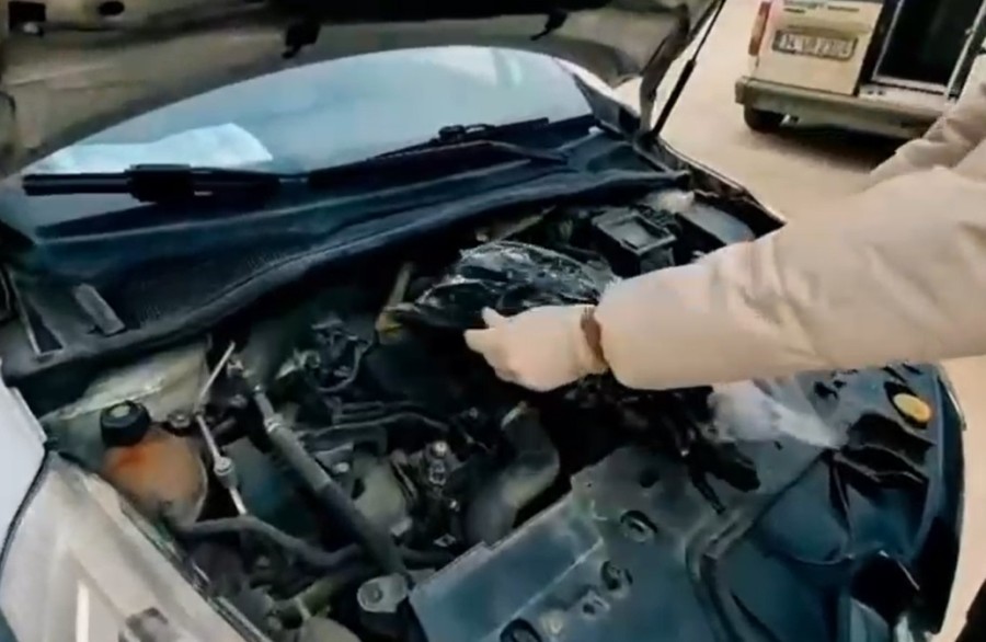 Şüphelilerin ikametlerinde ve kullandıkları araçta yapılan detaylı aramalarda, uyuşturucu maddelerin dikkat çekmemesi için aracın motor bölümüne gizlendiği ortaya çıkarıldı.