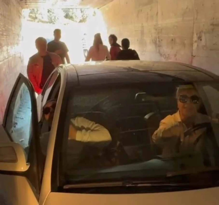 Tek şeritli bir alt geçitte servis minibüsüyle karşı karşıya gelen kadın sürücü, yol verme konusunda yaşanan inatlaşma sonucu aracını stop ettirerek geçişi tamamen engelledi.