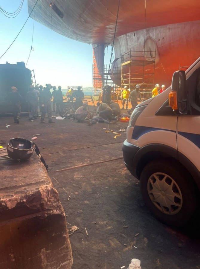 Alınan bilgiye göre, Beşiktaş Tersanesi'nde çalışan Doğanay Kurt (22) ve Mehmet Kesik (33), bir gemide boya yapma işlemi için "boom" adı verilen insan kaldırma platformuna bindi. İddiaya göre yaklaşık 15 metre yükseğe çıkan işçiler, boomun bağlantı noktasında yaşanan kopma nedeniyle sert bir şekilde zemine düştü.