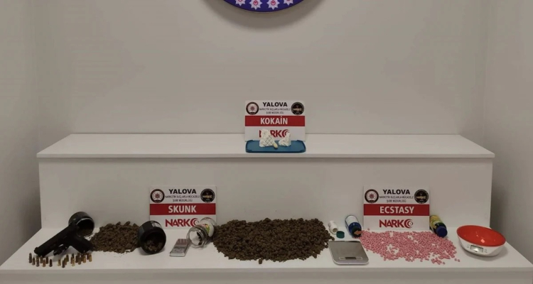Operasyonda 845 adet ekstazi, 202.80 gram kokain, 558 gram skunk, 1,62 gram Afyon sakızı, tabanca, tabanca fişeği ve 3 hassas terazi ele geçirildi.