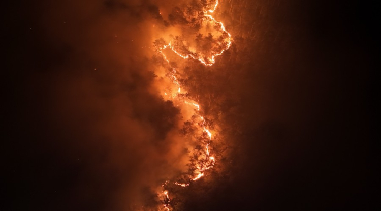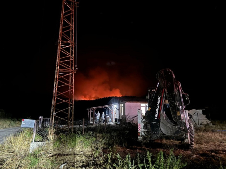Havanın kararmasıyla birlikte alevler geceyi aydınlatırken ekipler 12 saattir yangının enerjisini düşürmek için canla başla mücadele veriyor.