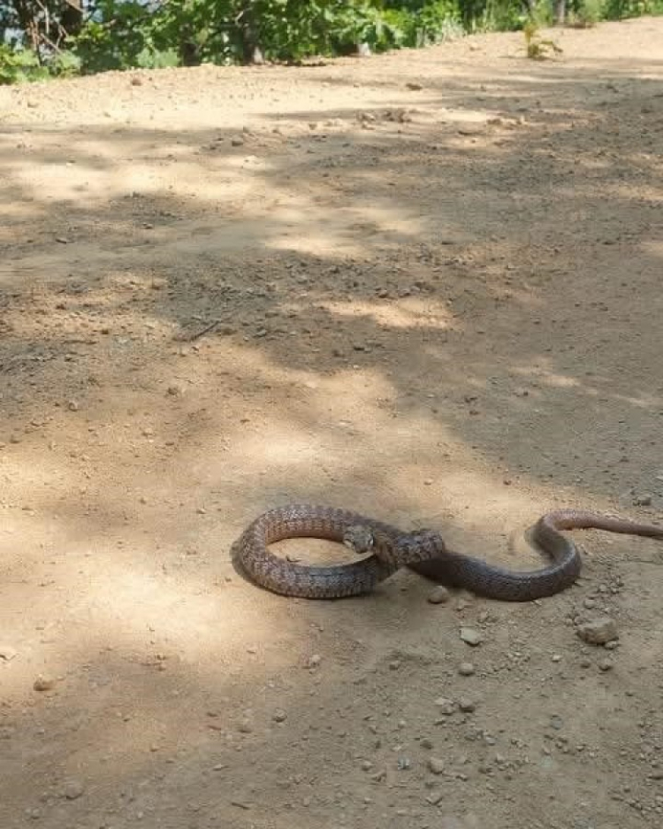 Bu çerçevede doğa koruma görevlisi Murat Özel, Kafkas yılanına rastladı. Özel, o anları cep telefonu kamerası ile kayda alırken, yılan bir anda saldırdı. Yılan ardından ormanlık alana giderek gözden kayboldu.
