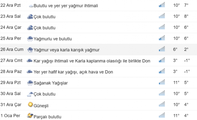 Özellikle İstanbul'da yılbaşı gecesi parçalı çok bulutlu ve yer yer yağmurlu bir havanın hakim olması, termometrelerin ise gece saatlerinde 6-8 derece dolaylarında seyretmesi bekleniyor.