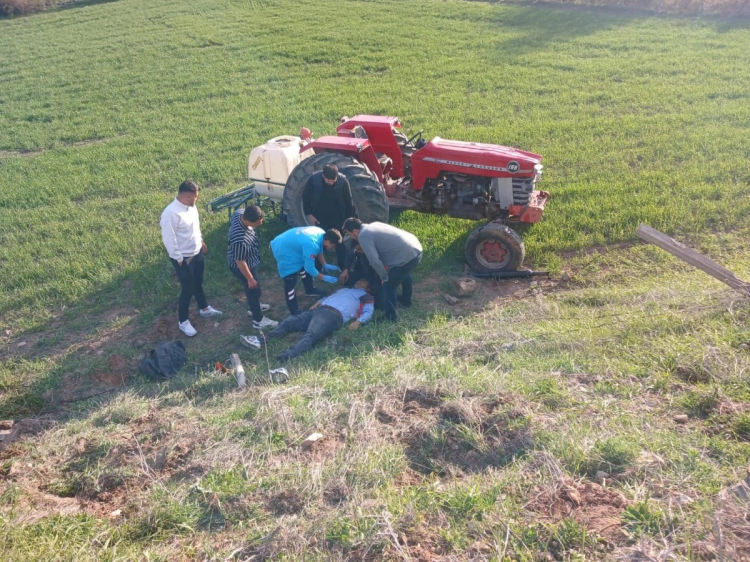 Devrilen traktörün altında kalan Doğan, çevredekilerin yardımıyla traktörün altından çıkarıldı.