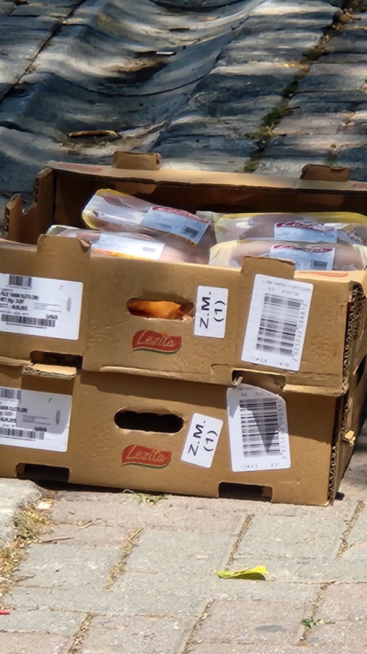 İzmir'de bir zincir marketin şubesinde, soğuk zincirde taşınması gereken tavukların güneş altında yerde bekletildiği görüntüler büyük tepki çekti. Vatandaşlar, "İşte insan sağlığına verilen değer" diyerek duruma isyan etti.