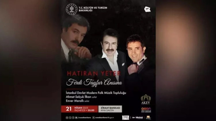 Kültür ve Turizm Bakanlığı tarafından 2 Ocak'ta hayatını kaybeden sanatçı Ferdi Tayfur anısına "Hatıran Yeter Konseri" düzenlenecek.