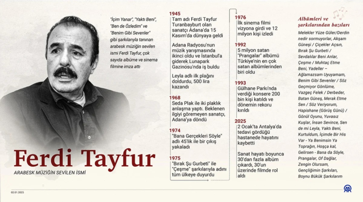Türk şarkıcı, besteci, söz yazarı ve sinema oyuncusu Ferdi Tayfur, 2 Ocak 2025'teki ölümünün ardından kendi şarkısının adındaki gibi "Hatıran Yeter Konseri" ile anılıyor.