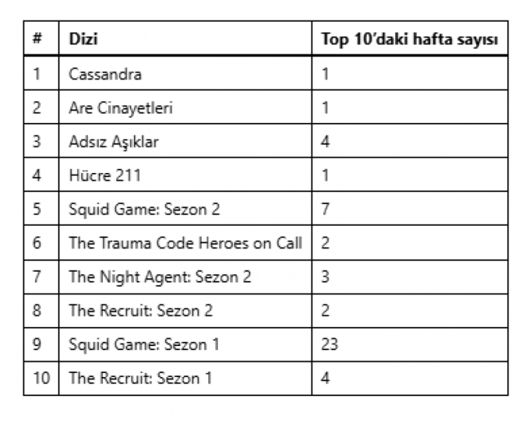 Netflix Türkiye 3 - 9 Şubat 2025 en çok izlenen diziler ve filmler