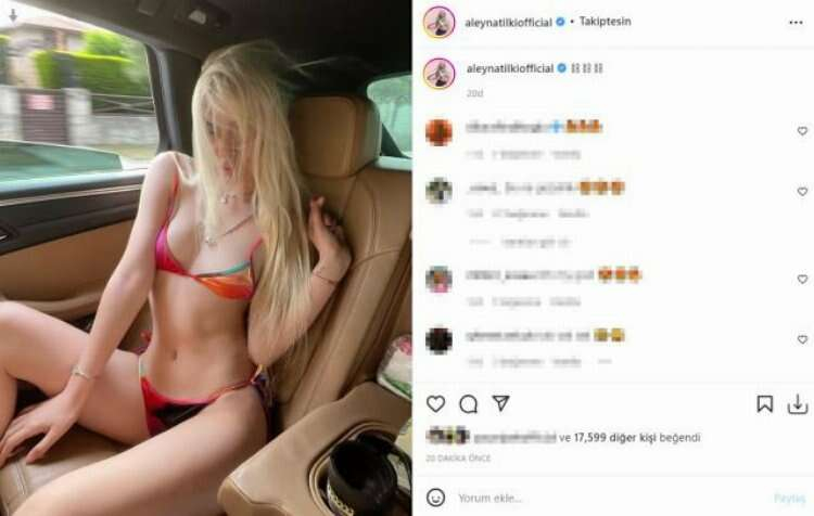 Instagram'da 3 milyon takipçisi bulunan Aleyna Tilki, renkli bikinisiyle araba içinde verdiği pozu takipçilerinin beğenisine sundu. Paylaşım kısa sürede yorum ve beğeni yağmuruna tutulurken genç şarkıcının arabada bikiniyle poz vermesi kafa karıştırdı.