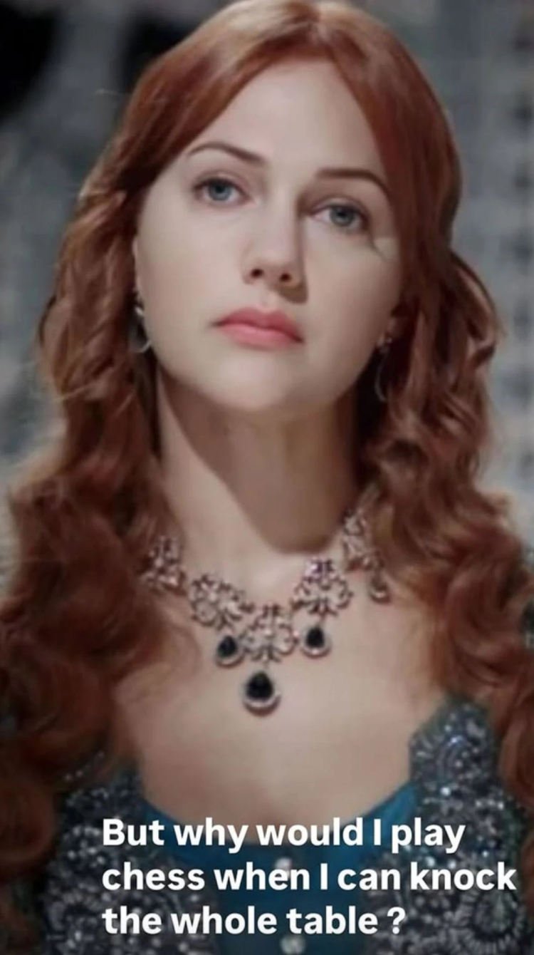 Ünlü şarkıcı, Hürrem Sultan karakterini, "Tüm masayı devirebilecekken neden satranç oynayayım ki?" notuyla paylaştı.