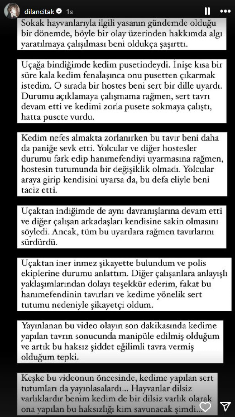 Dilan Çıtak Tatlıses'ten uçaktaki kedi kavgasıyla ilgili açıklama