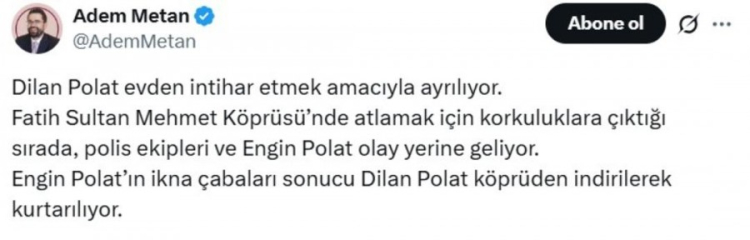 Gazeteci Adem Metan da sosyal medya hesabından konu ile ilgili yaptığı paylaşımda konu ile ilgili şu bilgileri verdi: