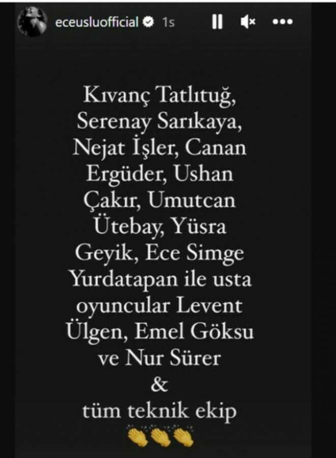 Ece Uslu daha sonra dizinin Kıvanç Tatlıtuğ, Serenay Sarıkaya, Nejat İşler, Canan Ergüder, Ushan Çakır, Umutcan Ütebay, Yüsra Geyik, Ecem Simge Yurdatapan ile usta oyuncular Levent Ülgen, Emel Göksu ve Nur Sürer'den oluşan kadrosunun tek tek isimlerini yazdı ve ekibine de ayrıca teşekkür etti.