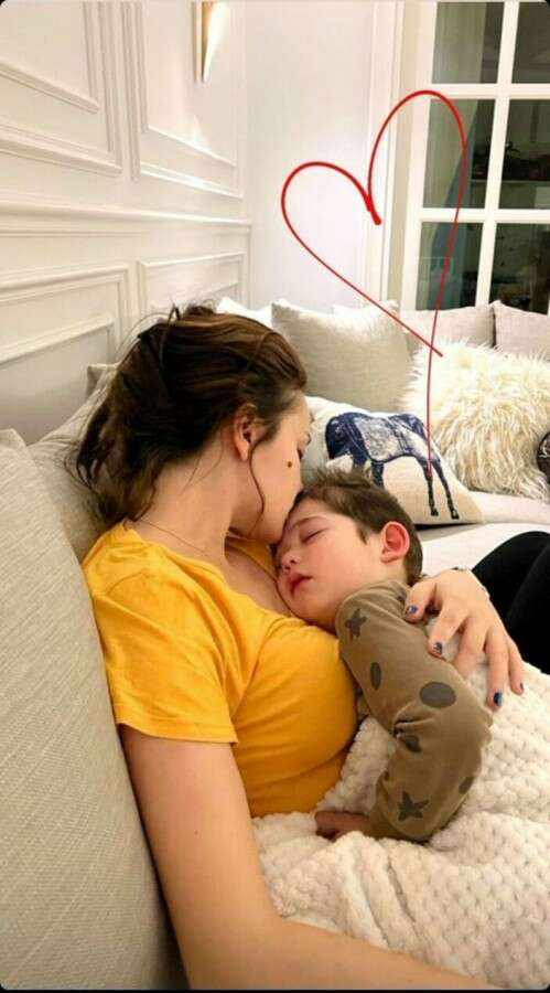 İkinci kez anneliği tadan Fahriye Evcen, büyük oğlu Karan'ın kucağında uyuyakaldığı anları sosyal medya hesabından paylaştı.