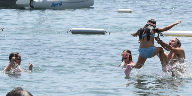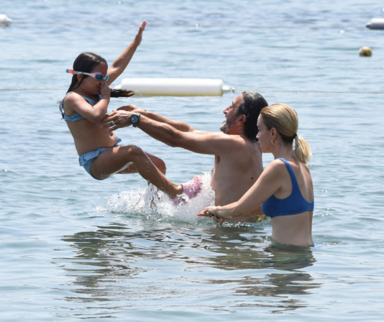Keyifli halleriyle dikkat çeken Fettah Can ve Cansu Kurtçu, çocuklarıyla birlikte denizde oyun oynadı.