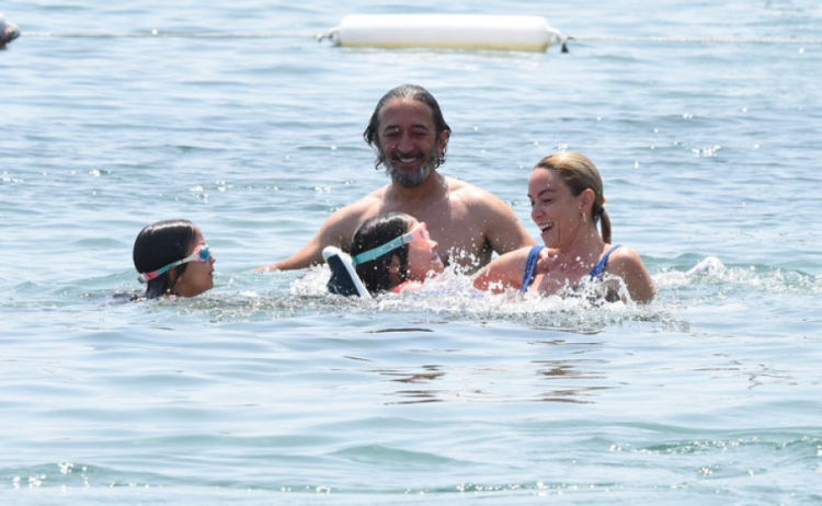 Ortakent'teki bir plajda çocuklarıyla birlikte görüntülenen ünlü çift, gün boyunca denizin ve güneşin keyfini çıkardı.