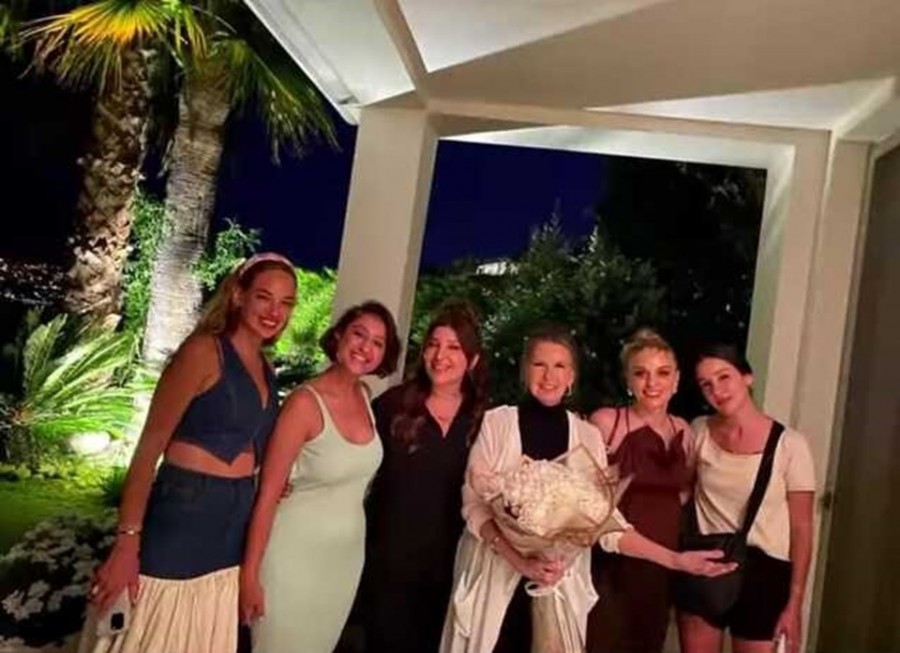 Gelin Takımı adlı sinema filminin çekimleri için Bodrum'da olan Ecem Erkek, Şebnem Bozoklu, Seda Bakan, Nilperi Şahinkaya ve İpek Güven; Yeşilçam'ın usta oyuncularından Filiz Akın'ı evinde ziyaret etti.