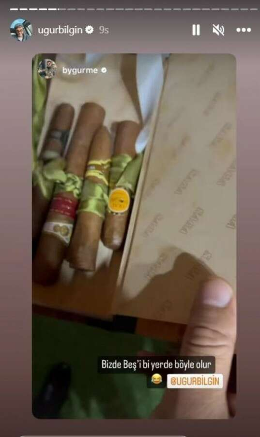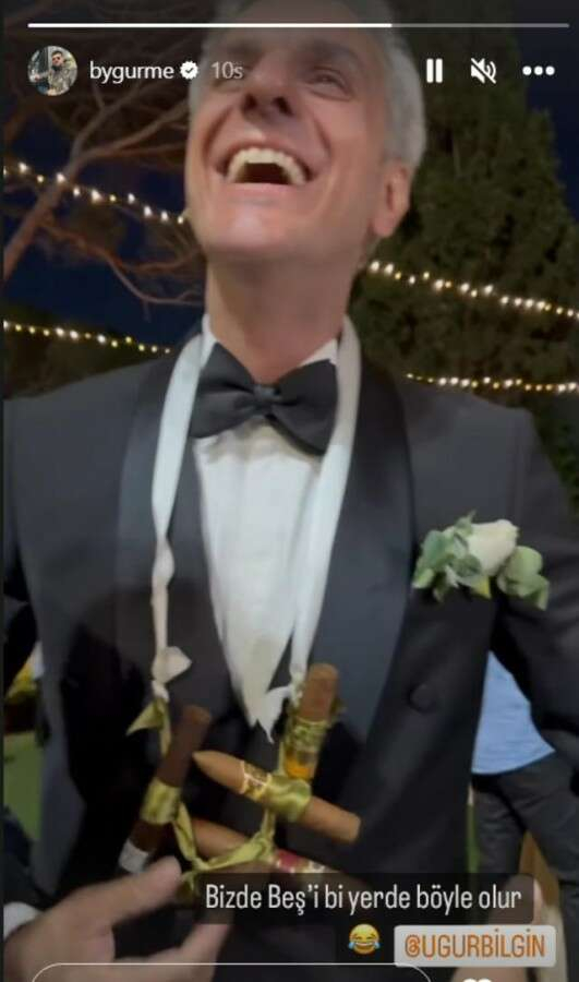 Uğur Bilgin'e bir arkadaşı düğün hediyesi olarak özel yaptığı 'beşi bir yerde'yi taktı. Ancak bu takıda altın değil purolar vardı. O anlar gelin ve damatı güldürdü.
