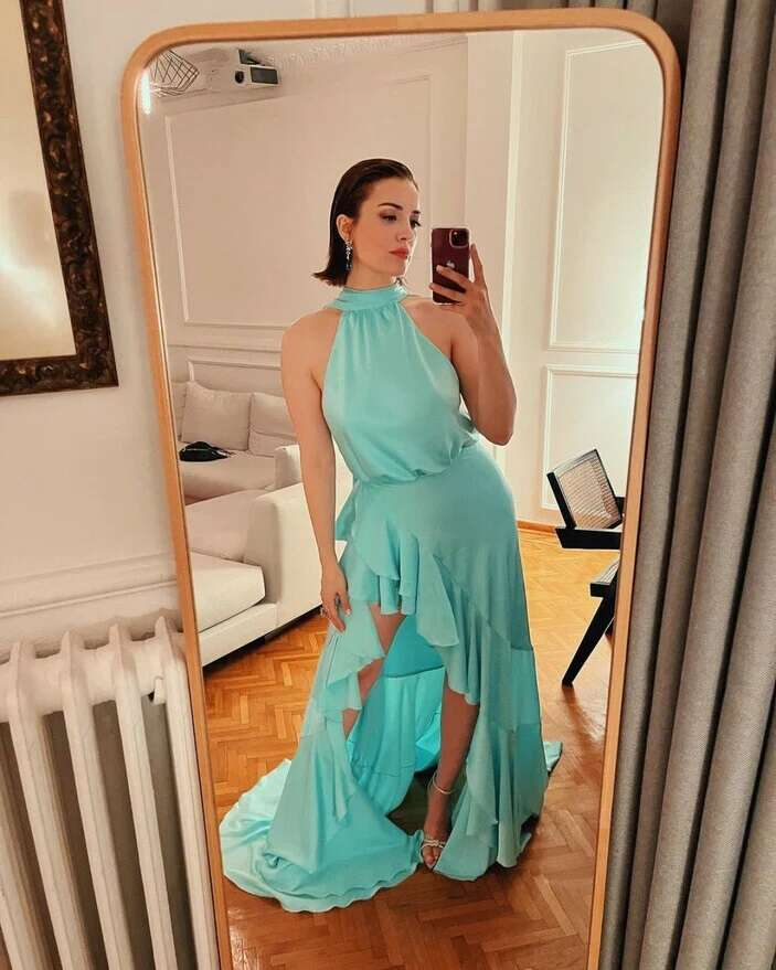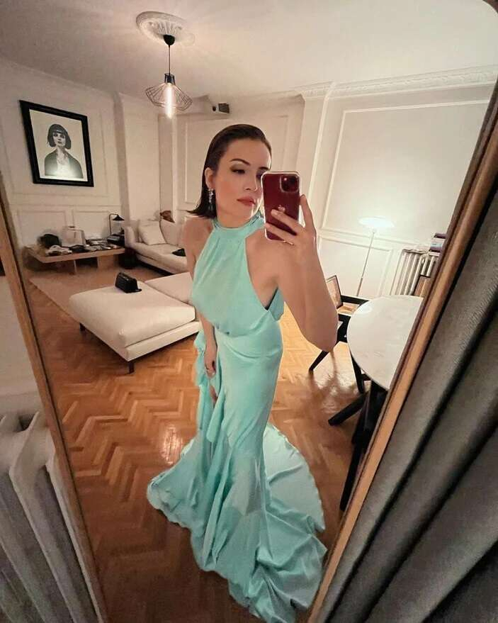 Cesur elbisesiyle poz veren ünlü oyuncu, takipçilerinden tam not aldı.