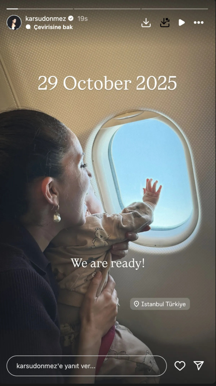 Karsu bebeğiyle Türkiye'ye geldi! Uçaktan paylaşım var