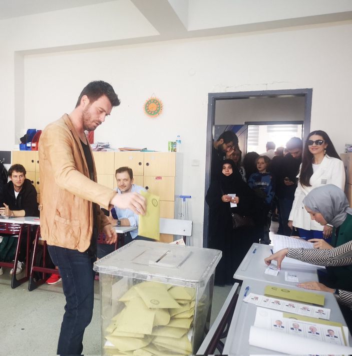Kıvanç Tatlıtuğ ve Başak Dizer, oylarını kullandı. Tatlıtuğ'un oy kullandığı anlarda ise eşi Başak Dizer'in beklediği görüldü.