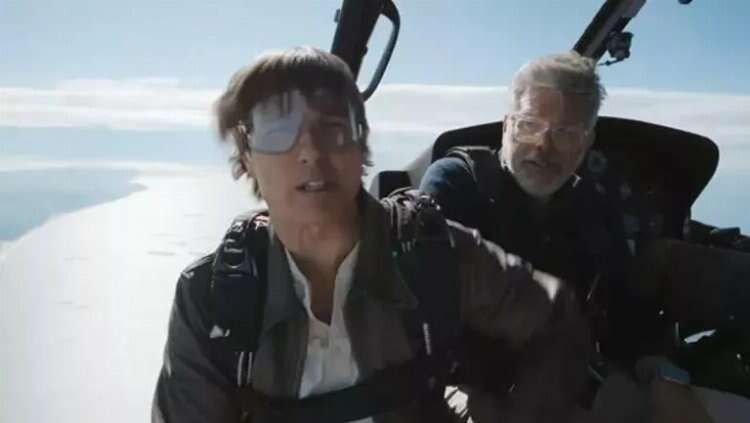 Ardından başka bir uçak, ünlü ismin olduğu uçağa yaklaşırken yaklaşırken, yönetmen Christopher McQuarrie'nin sesi duyulmuş ve Cruise'a filme geri dönmeleri gerektiğini söyleyerek; "Rahatsız ettiğim için üzgünüm Tom. Işığı kaybediyoruz ve yakıt azalıyor" demişti.