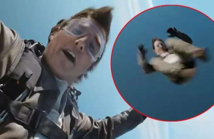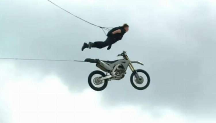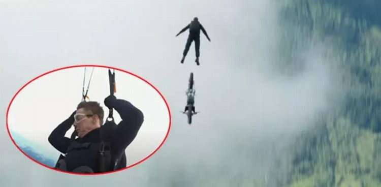Söz konusu sahnede, aktör bir motosikletin üstünde yamaçtan atladı; sonrasında havada serbest dalışa geçi ve paraşütünü açarak güvenli bir şekilde yere indi. Bu çekim, dublör kullanılmadan gerçekleştirildi. 60 yaşındaki Cruise, videonun başında; "Küçüklüğümden beri bunu yapmak istiyordum. Bu şimdiye kadar denediğimiz en tehlikeli şey" diye konuştu.