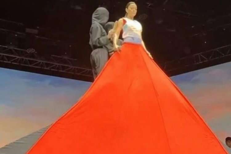 Babacan'ın üniversite öğrencilerinden oluşan ekibiyle bir ayda tamamladığı, 3.20 metre yüksekliğinde ve 4.5 metre enindeki kostüm, konser sırasında izleyicilerin karşısında Simge'ye giydirildi.