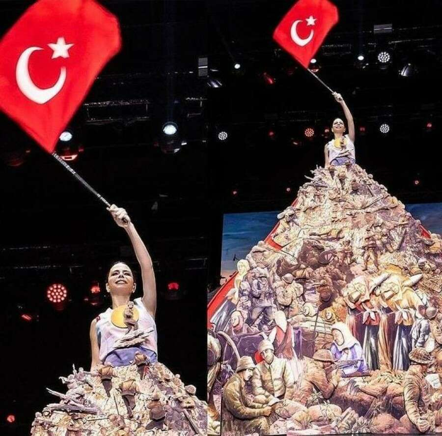 Tam 20 kişilik ekibin giydirdiği elbise, Türk milletinin kurtuluş mücadelesini anlatıyor.