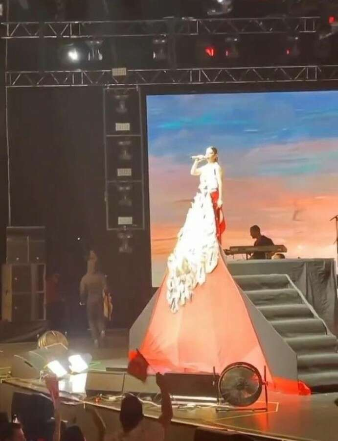 Konser sırasında 30 Ağustos Zafer Bayramı'nı kutlayan Simge, yeteneğinin yanı sıra kırmızı sakallarıyla da tanınan modacı Tanju Babacan'ın bir kıyafetini giydi.