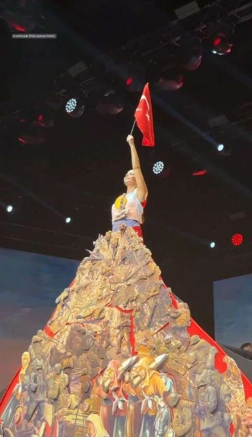 Aşkın Olayım adlı şarkısıyla son dönemin en çok konuşulan isimlerinden biri olan Simge Sağın, Harbiye Cemil Topuzlu Açık Hava Tiyatrosu'nda sahne aldı. 30 Ağustos Zafer Bayramı'nı kutlamayı unutmayan sanatçının kostümü olay oldu.