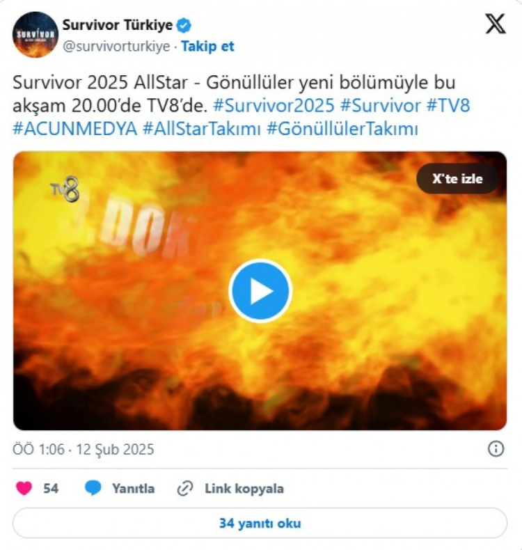 TV8'de izleyicilerle buluşan Survivor 2025, bu yıl da tüm heyecanıyla sürüyor.
