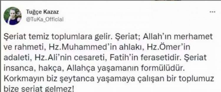 Tuğçe Kazaz'ın şeriat açıklaması tepki aldı