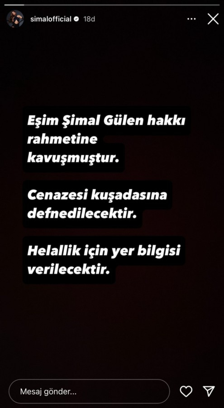 4 yıldır tedavi gören Şimal'in hayatını kaybettiğini eşi sosyal medyadan paylaştı.