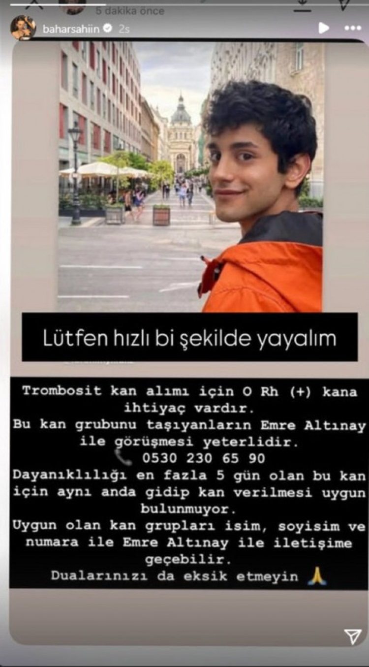 Şahin, bir sonraki paylaşımında da "Lütfen hızlı bir şekilde yayalım" notuyla Yıldız'ın kana ihtiyaç olduğunu duyurdu.