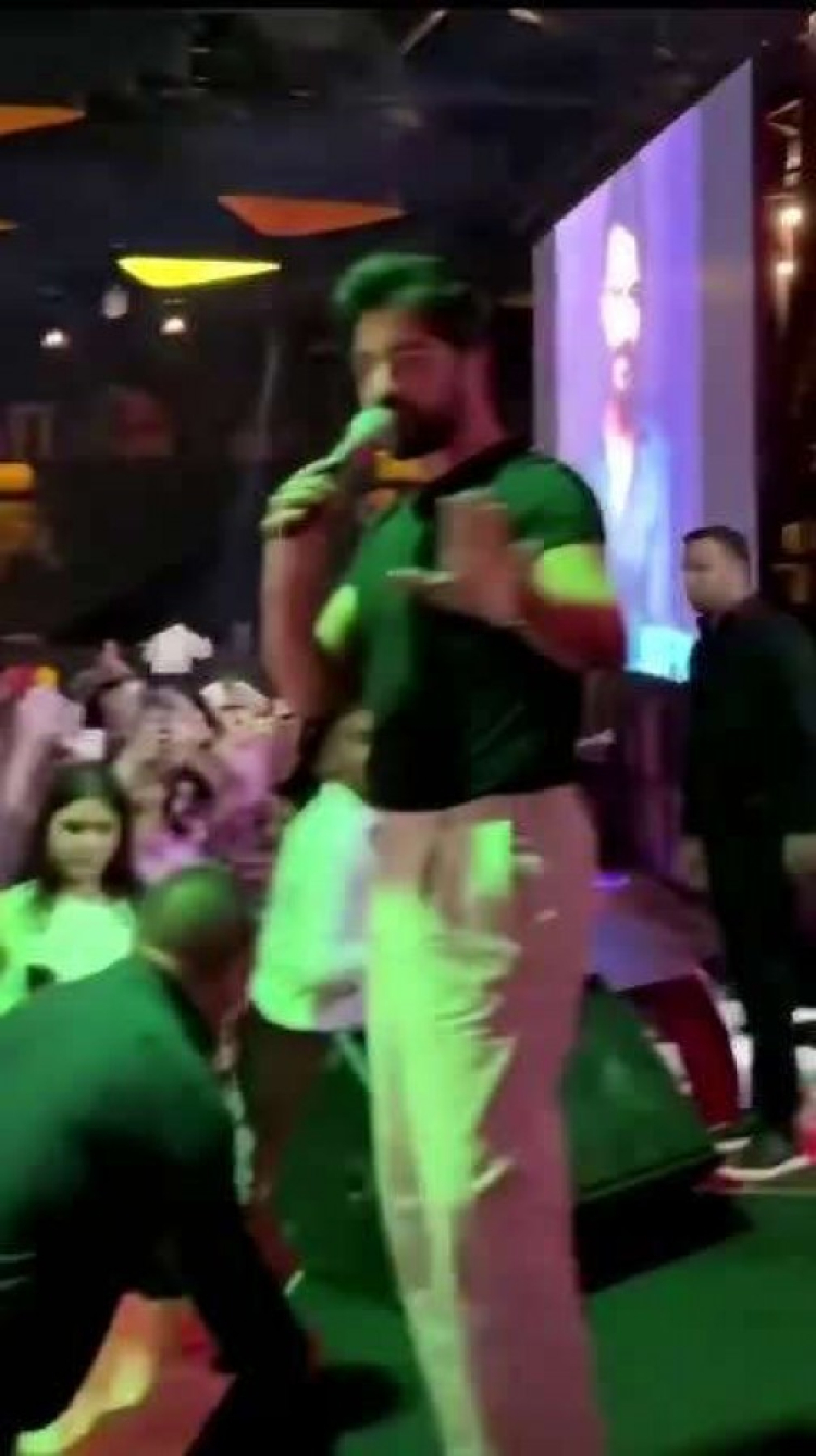 Ünlü şarkıcı Yusuf Güney, Bakü'deki konserinde sahneye çıkıp kendisiyle fotoğraf çektirmek isteyen kadını sahneden aşağı indirdi.