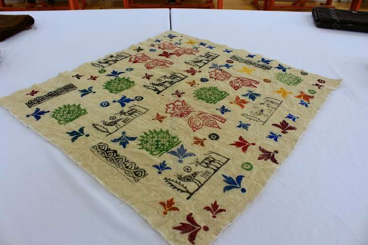 Kök boya ile boyama bizim bir projemiz enstitülülerimiz bünyemizde tema ve proje kapsamında ustalarımız çalışıyor. Bizim 2020 yılında başlatmış olduğumuz bir proje var; doğadan doğala bürünelim diyelim. Burada ehramı hem doğal haliyle hem de doğadan elde ediğimiz renklerle ehrama yeni bir boyut kazandırdık. Birinci hedefimiz bu yöredeki endemik bitkileri kullanarak kök boya yapmak. Kendi yöremizde eskiden beri kök boya kullanılıyordu. Yine biz büyüklerimizden öğrendiğimiz renklendirme tonlarıyla soğan kabuğu, ceviz, efelik otu ceviz yaprağı, sığır kuyruğu bitkisi gibi bir çok bitkiyi bir araya getirerek tonlamalar elde ettik. İpliği boyayarak ehrama yeni bir doku kazandırdık. Aynı zaman da ecoprint tekniği ile Erzurum’daki bitkilerle doğal baskı yapıyoruz. Bitkilerin dokusu deseni ehram üzerine işleniyor.