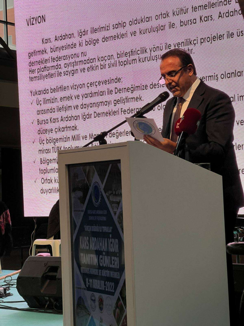Ekonomik olarak zor dönemlerden geçiyoruz. Pandemi, Rusya-Ukrayna savaşı, enerji krizi ve dünyadaki ekonomik durgunluk… Tüm bu zorluklara rağmen etkili bir organizasyon düzenlemek istedik ve başarılı olduk. Bu kadar kapsamlı bir tanıtım gününe Bursa ilk kez şahitlik etti. Başarının tek yolu çok çalışmaktır. Çalışırsanız sonuca varırsınız. Merinos AKKM’de tanıtım günleri etkinliğimiz için çok elverişli bir alan. Bizim yaşadığımız kent Bursa. Büyükşehir Belediyemiz Kültür ve Sosyal İşler Daire Başkanlığı’na bu organizasyona dahil etti. Bursa’ya dahil kültürel fonksiyonlar da organizasyonun içine dahil edildi. Tam anlamıyla iki kültürün iç içe geçtiği anlamlı bir etkinlik oldu. Kars, Ardahan ve Iğdır’dan da bir çok hemşerimiz geldi.