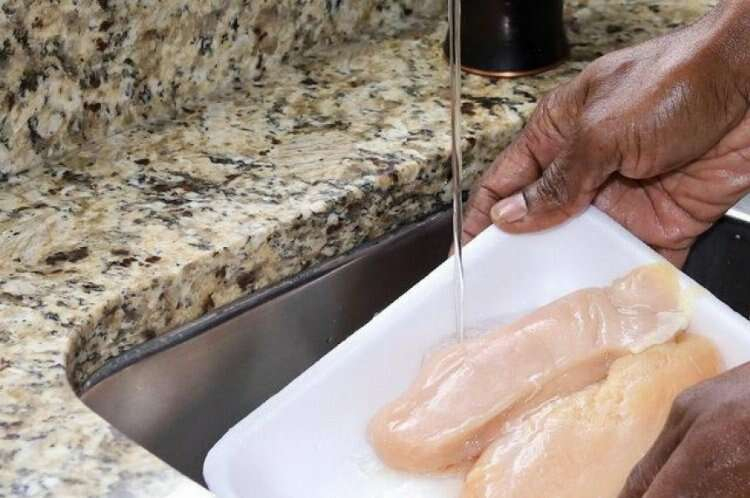 Mutfaklarda meyve ve sebzelerin bol suda yıkanması rutini etlerde de uygulanıyor. Meyve ve sebzelerin aksine etlerin yıkanmaması gerekiyor. Özellikle tavuk, yıkandığı zaman saatli bombaya dönüşebilir. Çiğ tavuk yıkandığı zaman zehirlenme riski artıyor.