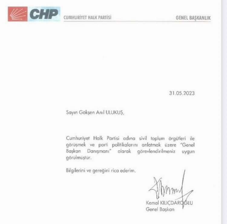 Zafer Partisi'nin gençlik kolları Ayyıldız Hareketi'nin eski başkanlarından Gökşen Anıl Ulukuş 4 Temmuz tarihinde "Kemal Kılıçdaroğlu'nun takdir ve tensipleriyle" CHP Genel Başkan Danışmanlığı görevine atandığı şeklinde açıklama yapmıştı. Bugün CHP'den yapılan açıklamada ise, 4 Haziran'dan sonra Engin Özkoç, Hacer Foggo ve Özgür Yici dışında danışman atanmadığı belirtildi. Ardından ise Ulukuş, Kılıçdaroğlu'na 4 Haziran sonrasında en az 4 kez "Hâlâ danışman mıyım?" diye sorduğunu ifade etti.