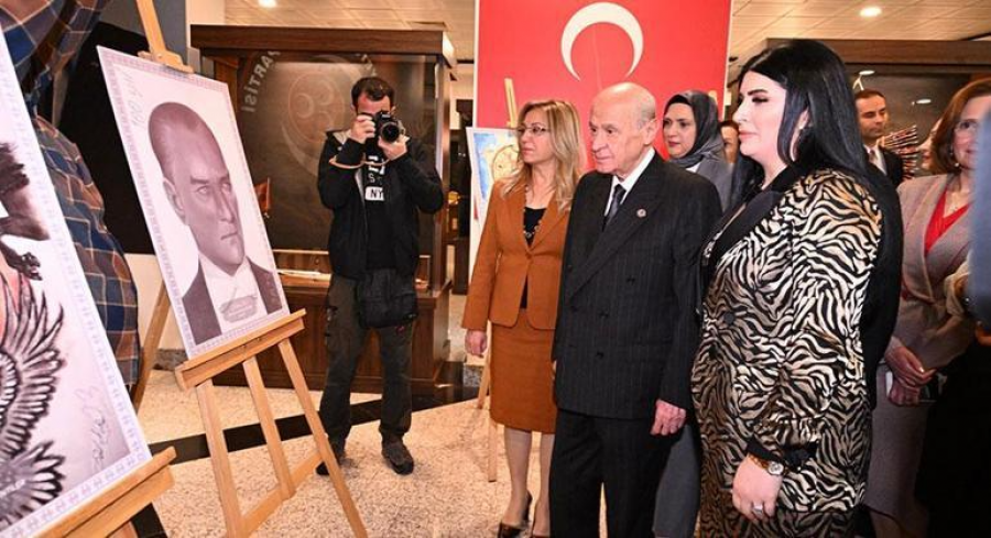 MHP Genel Başkanı Devlet Bahçeli'nin himayesinde parti genel merkezinde 'Yeni Yüzyılın Kara Kalem Sergisi' düzenlendi. Serginin açılışına MHP lideri Bahçeli de katıldı. Ressamlarla sohbet eden Bahçeli, eserler hakkında bilgi aldı. Cumhuriyet'in 100'üncü yılına özel hazırlanan sergide, Atatürk, Fatih Sultan Mehmet, Metehan, Yavuz Sultan Selim ve Kürşat gibi hükümdar ve komutanların kara kalem portreleri yer aldı. Parti genel merkezindeki sergi, 17 Aralık'a kadar açık kalacak.