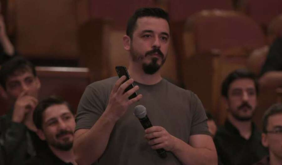 Davutoğlu, bir katılımcının "Hangi eylemleriniz sonucu cemaatin yurtlarında ders verecek rütbeye ulaştınız?" sorusuna ters cevap verdi.