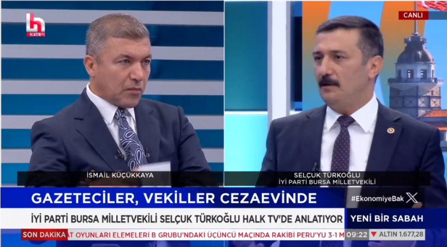 İYİ Parti Bursa Milletvekili Selçuk Türkoğlu, Halk Tv'de İsmail Küçükkaya'nın sunduğu Çalar Saat programında açıklamalarda bulunuyor.