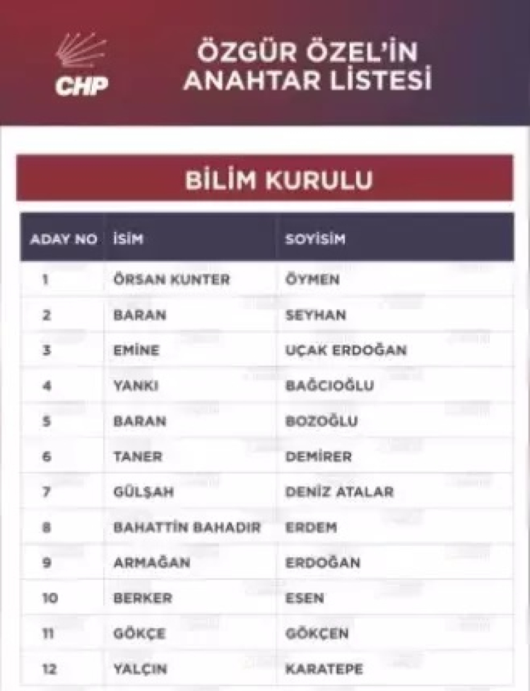 Özgür Özel'in kurultaya sunduğu Bilim Kurulu listesi de belli oldu. 12 kişilik liste şöyle: